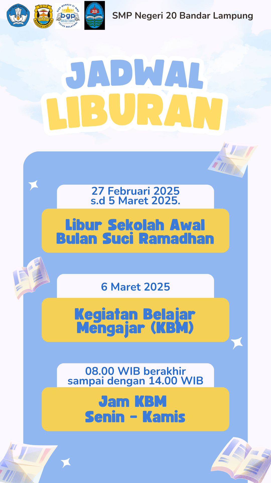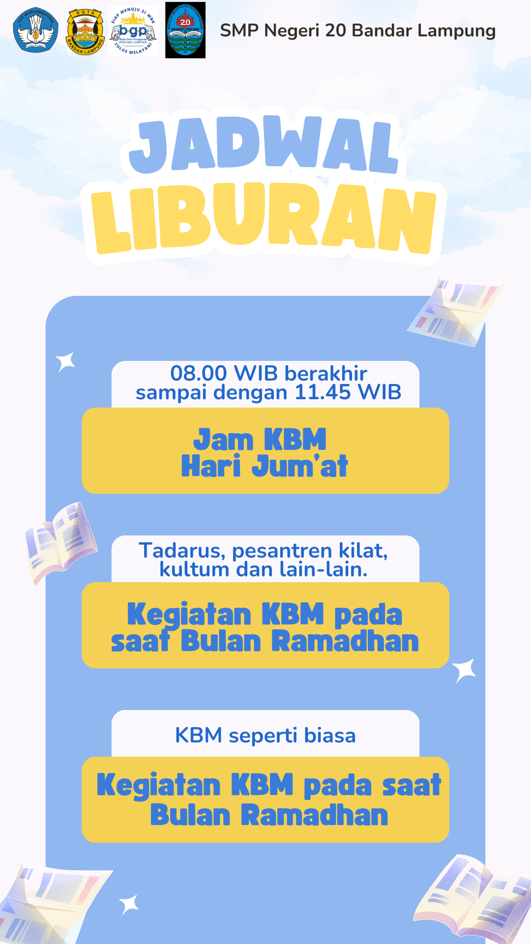 | 3 | JADWAL SANLAT SMPN 20 BANDAR LAMPUNG 1446 HIJRIYAH TAHUN 2025 | 2025-03-11 11:44:31 | Download |
