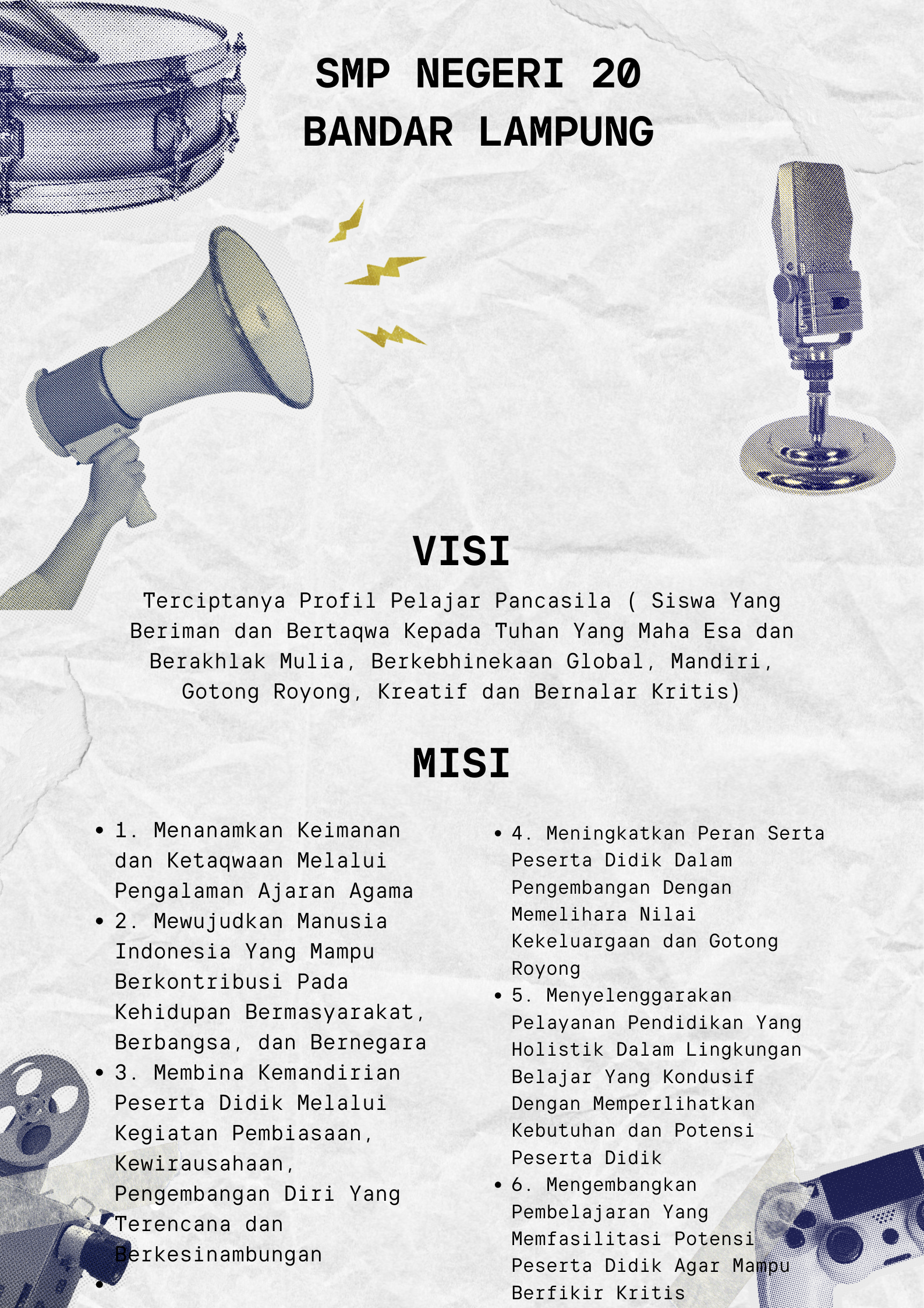 SMP NEGERI 20 BANDAR LAMPUNG memiliki Visi dan Misi sebagai berikut :